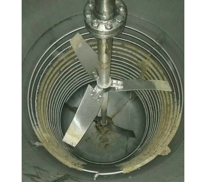 常規的攪拌形式有錨式、槳式、渦輪式、推進式、框式等,攪拌裝置在高徑比較大時,可用多層攪拌槳,特殊產品甚至會使用較為復雜的MIG式攪拌。